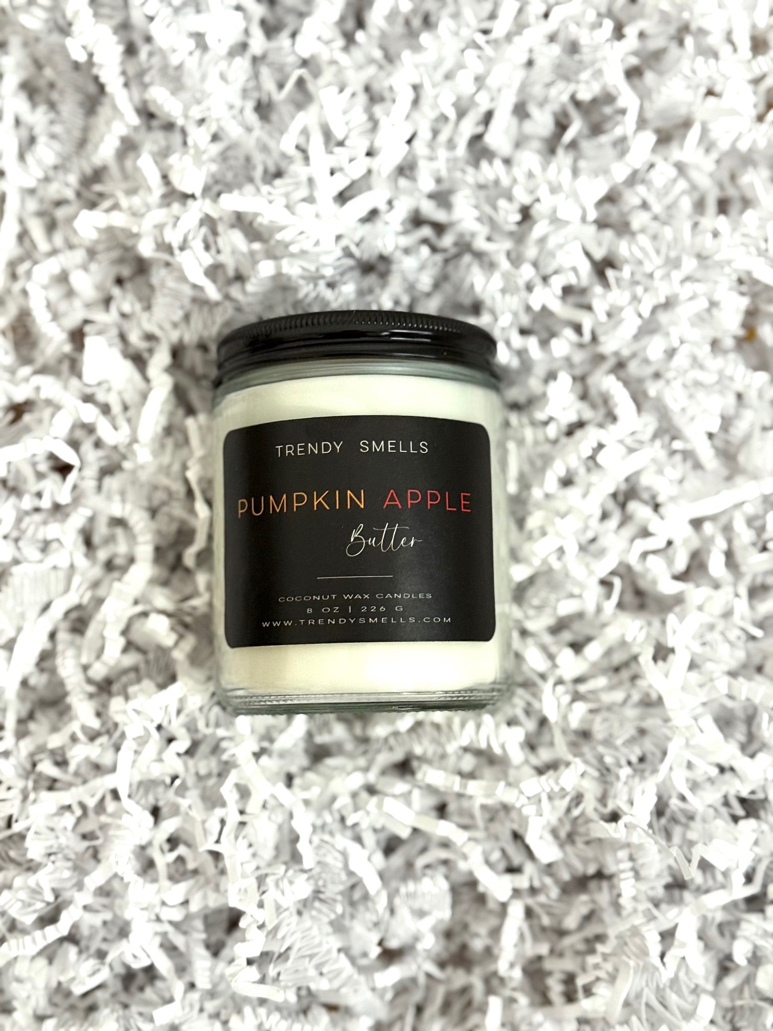 Our premium wood wick candle boasts a captivating Pumpkin Apple Butter scent, impressive burn time, and environmentally friendly coconut wax, all in a sleek glass jar.